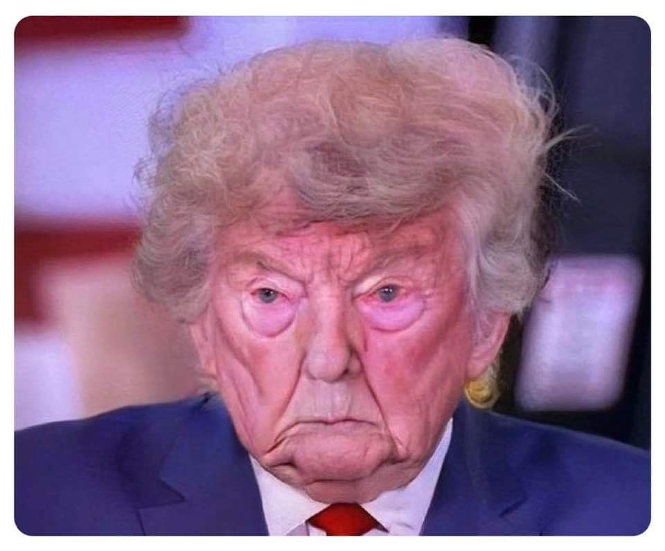 OK I've been admonished that the above photo is probably photoshopped. My thanks to Earl G who posted this photo (below) that is most likely the original pic. Someone on BlueSky apparently used it to make Chump even more hideous than he already is: