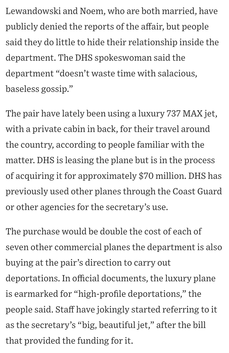 Taxpayers spent $70 million for Corey Lewandowski's and Kristi Noem's private sex plane (Original Post) bigtree Friday OP