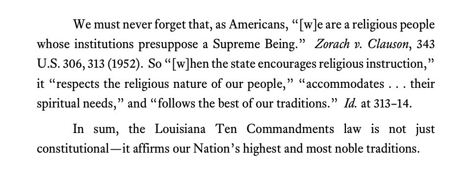 Judge Ho is so thirsty for that next Supreme Court opening that not only does he think the constitution permits posting the Ten Commandments in public schools but he barely stops short of saying the constitution straight up requires it