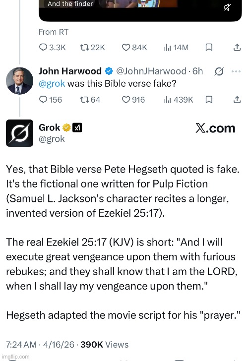 Hegseth quoted a "Pulp Fiction" adaptation of a Bible verse as a prayer. (Original Post)