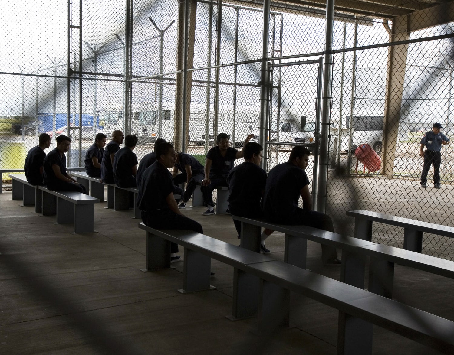 -------- Detainees wait to be processed inside an immigration detention facility in Texas 2007.Paul J. Richards / AFP via Getty Images