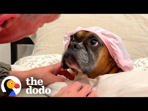 Boxer Loves Getting Tucked Into Bed By Grandpa